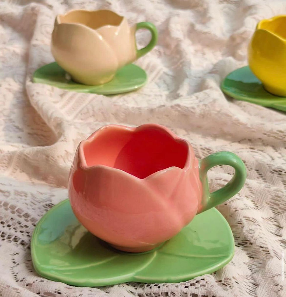Clover Home’s Pink Pastel Tulip Cup & Saucer Set – Pack of 2 - Super Combo